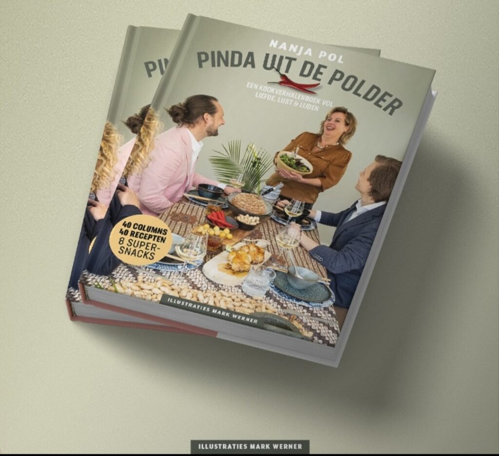 Het boek Pinda uit de Polder is een bundeling van 40 van de beste culinaire columns met 40 van mijn smakelijkste recepten. Deze verschenen de afgelopen jaren in het Vrij Weekendmagazine van het Noordhollands Dagblad onder de rubriek ‘Nanja kookt over’. Daar deel ik, een uit de klei getrokken maar in de Sawa gewortelde West-Friese pinda, wekelijks mijn verhalen en recepten. Met een voorwoord van Karin Bloemen, ook dat nog! Verder staan er 8 favosnackrecepten in van mensen die een bijdrage hebben geleverd aan dit kleurrijke boek.